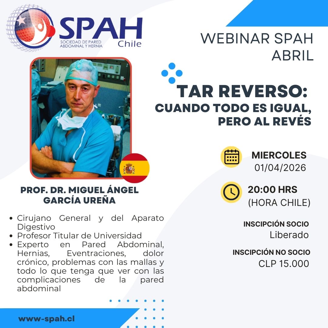 Expositor: Dr. Miguel Angel García Ureña Inscripciones: Socios SPAH (cuota al día): Liberado No socios: CLP 25.000 | USD 15.000